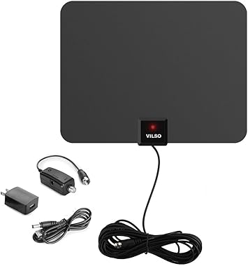 Amazon Com Vilso Flat Hd Digital Indoor Amplified Tv Antenna 50 Miles Range Detachable Amplifier Signal Booster 12ft Coax Cable Black Electronics